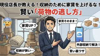 「この部屋いいけど収納が…」と諦めるのはまだ早い!収納のために家賃を5,000円上げると、2年で12万円もの大損になります。現役不動産店長が、家賃を上げずに荷物を「外」に逃がして快適に暮らす裏ワザ(サマリーポケット活用法)を本音で解説します。