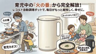 育児中の「火の番」に限界を感じていませんか?現役パパがレコルト自動調理ポット(RSY-2)を本音レビュー!材料を入れて放置するだけで、絶品スープや面倒な離乳食が完成します。気になる作動音やお手入れのデメリットも含め、使い心地を徹底解説。