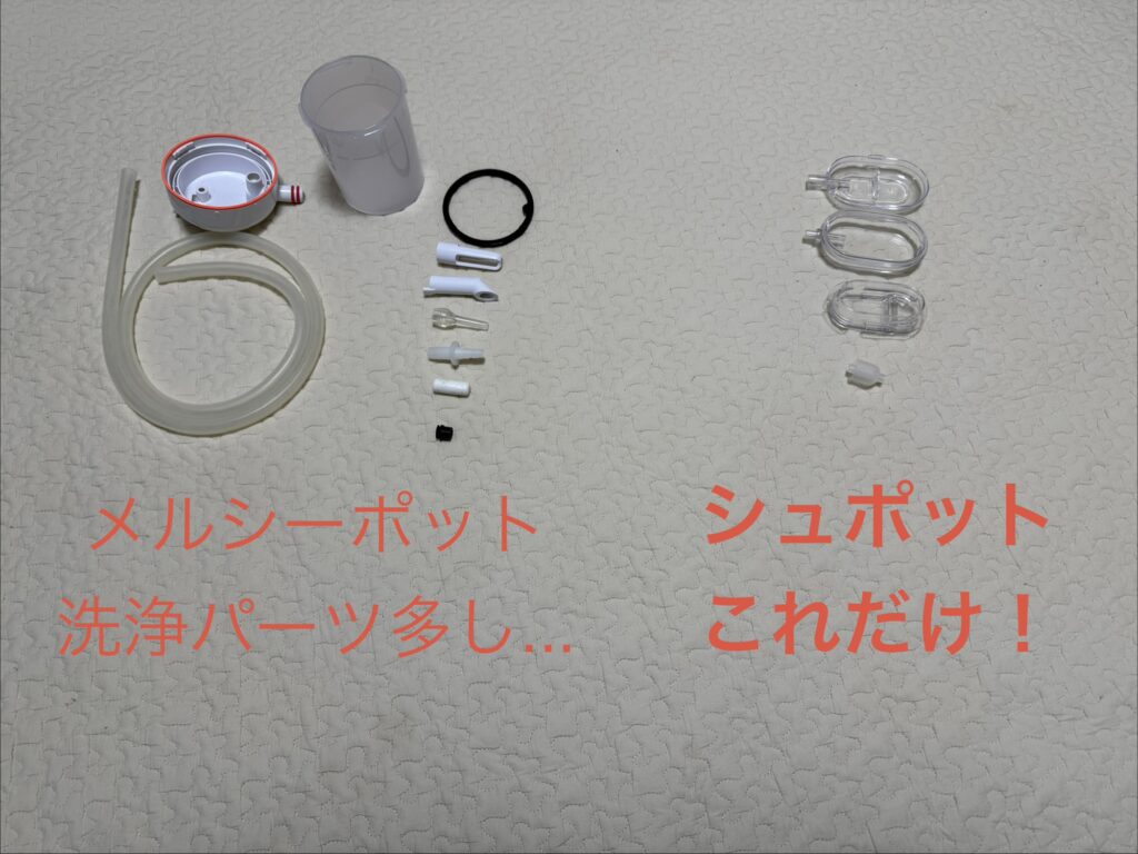 左:メルシーポットの洗浄パーツ / 右:シュポットの洗浄パーツ