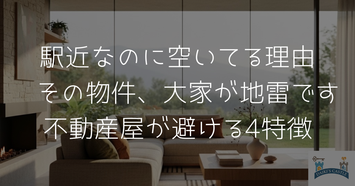 部屋探しでよく聞かれるこの疑問。 私の答えはシンプルです。物件自体は悪くない。 でも“大家”が理由で紹介を後回しにしている――そんなケースが実在します。